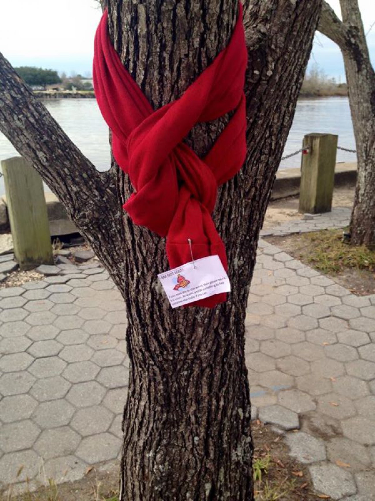 Ça se passe au Canada, et c’est une initiative de l’association Scarves in the Port City : Accrocher des écharpes autour des arbres, pour les sans domicile fixe. Le froid est si intense que le mercure du thermomètre est rarement au dessus de zéro l’hiver, mettant les sans abris dans des conditions très difficiles.