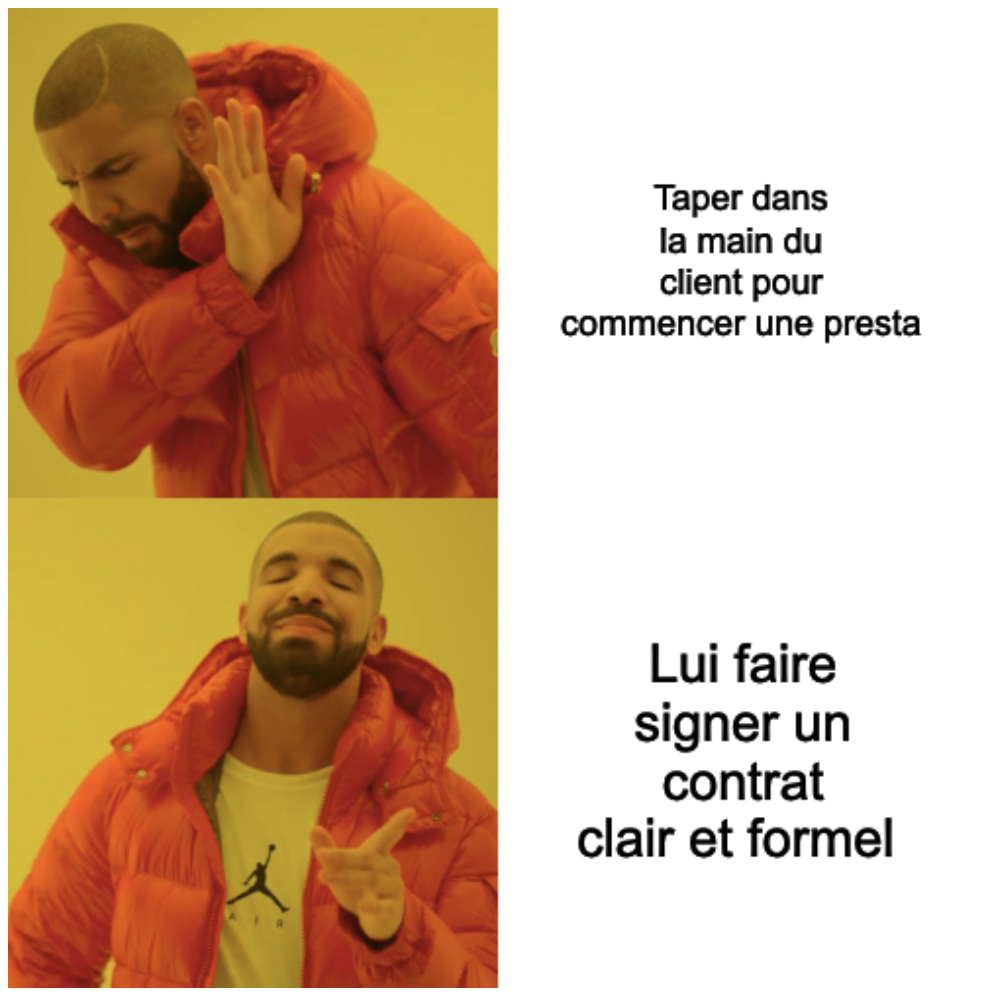 J’ai conscience que le mot « contrat » fait peur, surtout quand on est Freelance depuis peu, et qu’on ne veut pas effrayer les clients, mais c’est un pré-requis essentiel si vous voulez aborder votre vie de freelance sereinement.