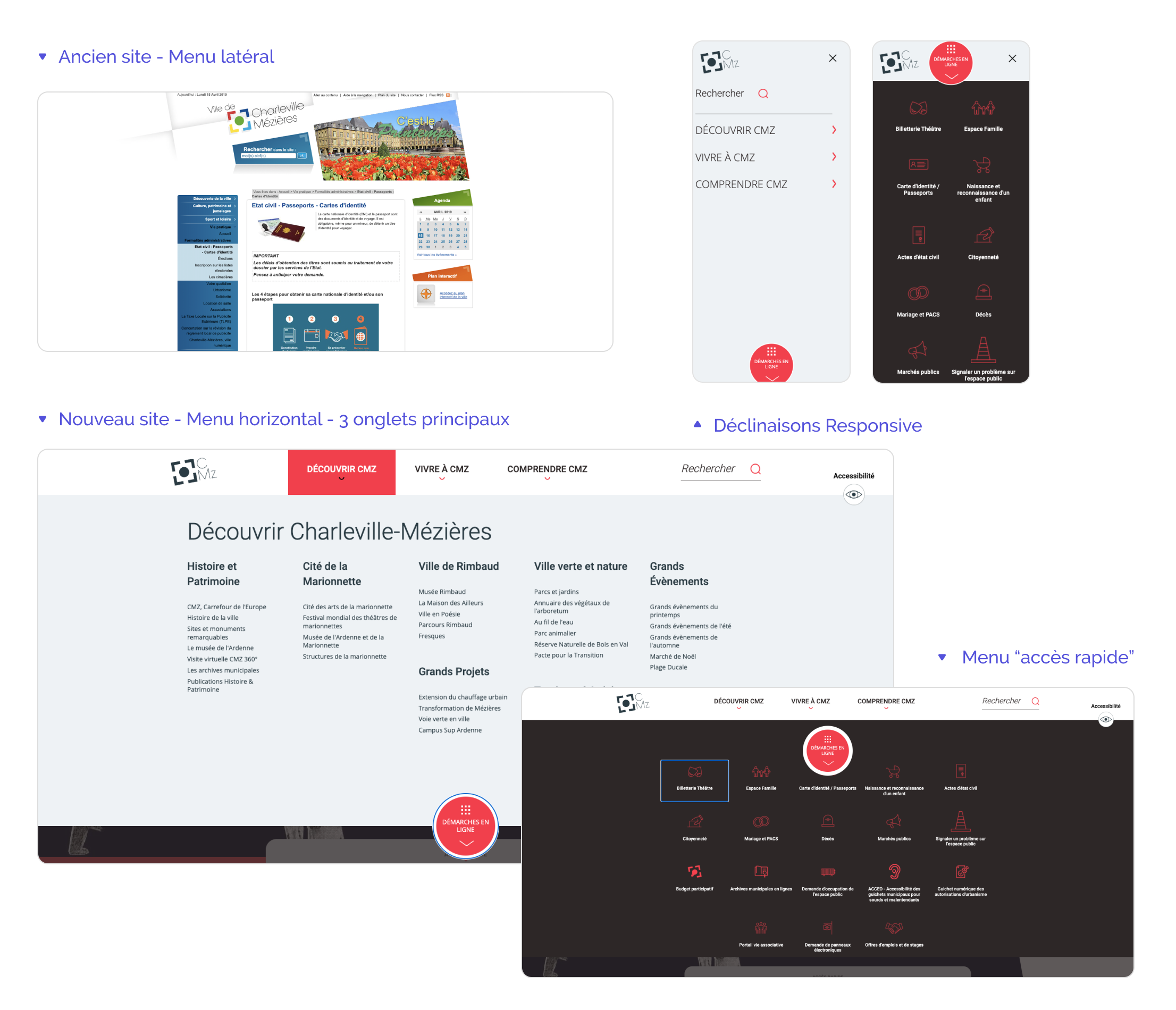 Lors d’ateliers de co-construction avec les agents de la Mairie, j’ai recueilli et organisé les différentes missions/prérogatives de la Mairie et l’importance de leur accessibilité sur le site pour chaque persona.