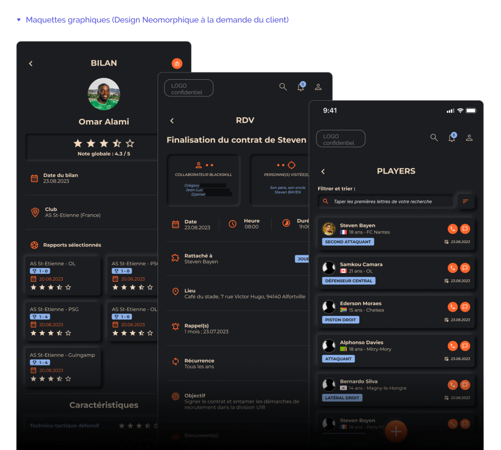 Un client dans le secteur sportif a souhaité se doter d’une application mobile pour manager ses opérations quotidiennes et sa prospection. Partant de zéro, j’ai réalisé toute la conception UX/UI de son application.