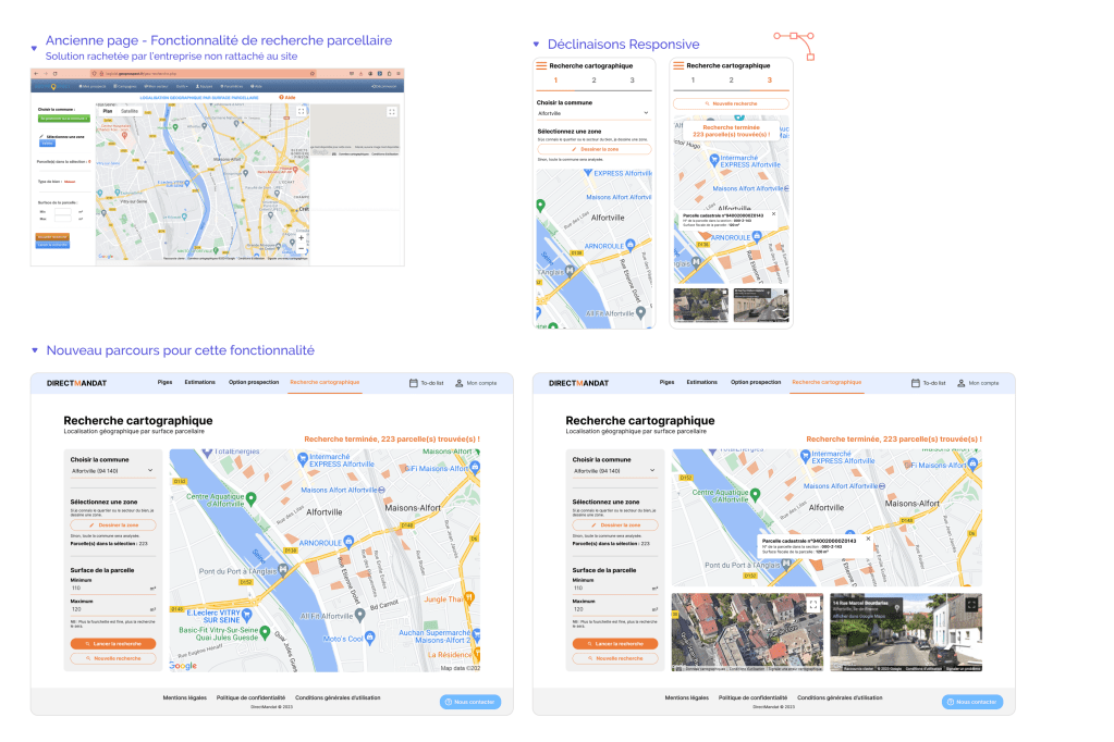 En binôme avec une designer, nous avons décliné les parcours sur Figma en desktop & mobile et animé le prototype. J’ai ensuite mis en place le retroplanning d’intégration front & API avec les développeur de l’entreprise.