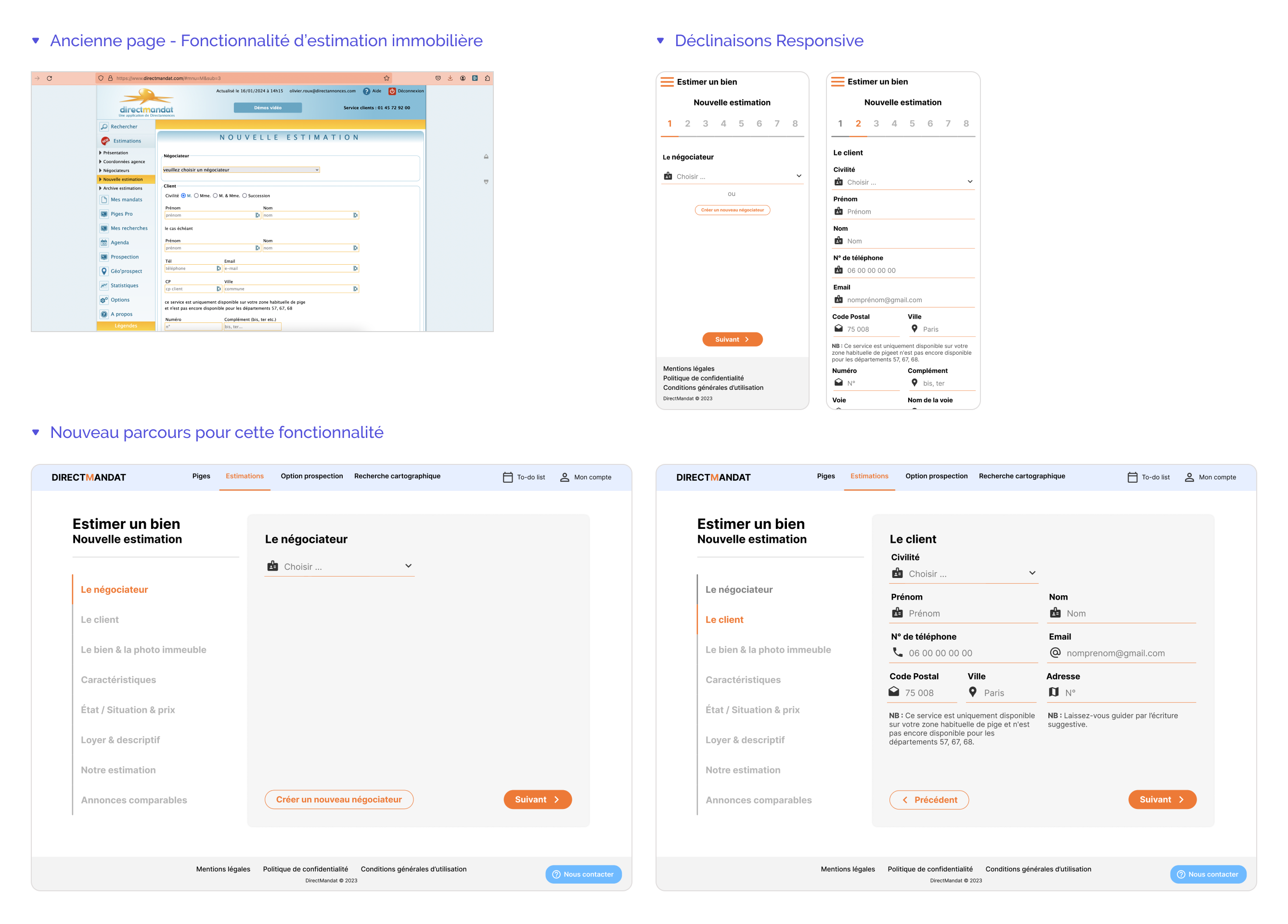 En binôme avec une designer, nous avons décliné les parcours sur Figma en desktop & mobile et animé le prototype. J’ai ensuite mis en place le retroplanning d’intégration front & API avec les développeur de l’entreprise.