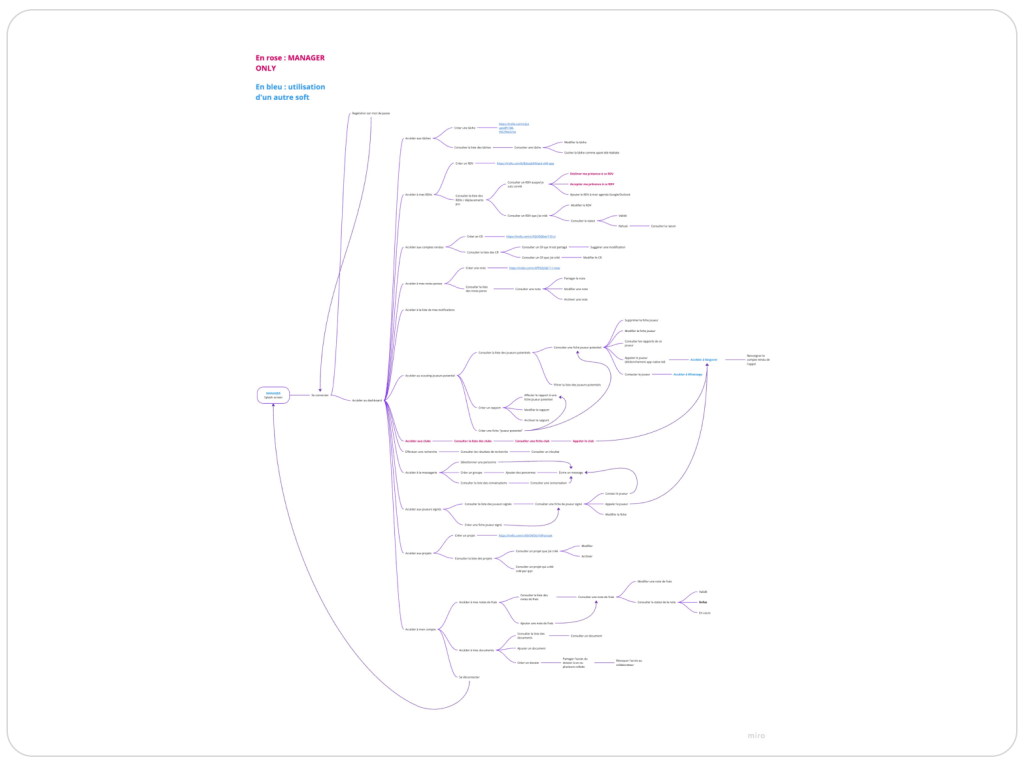 J’ai conçu l’architecture de l’information : arborescence, formulaires, listes, critères de tri/filtres, pages, actions, droits d’accès et liaisons entre les différents types de contenus.