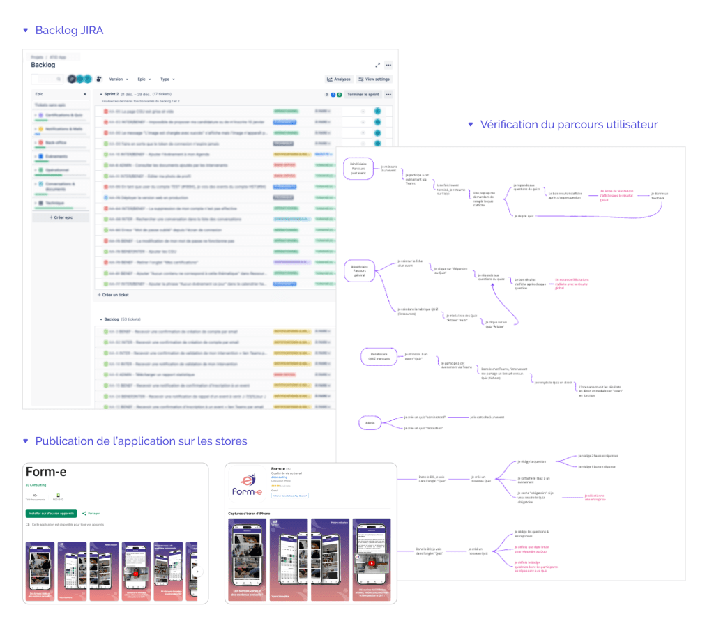 À l’aide du framework SCRUM, j’ai créé & paramètre le tableau JIRA pour alimenter le backlog & définir les sprints (story point). J’anime les rituels agiles pour suivre le développement, recetter et suivre la résolution des bugs.